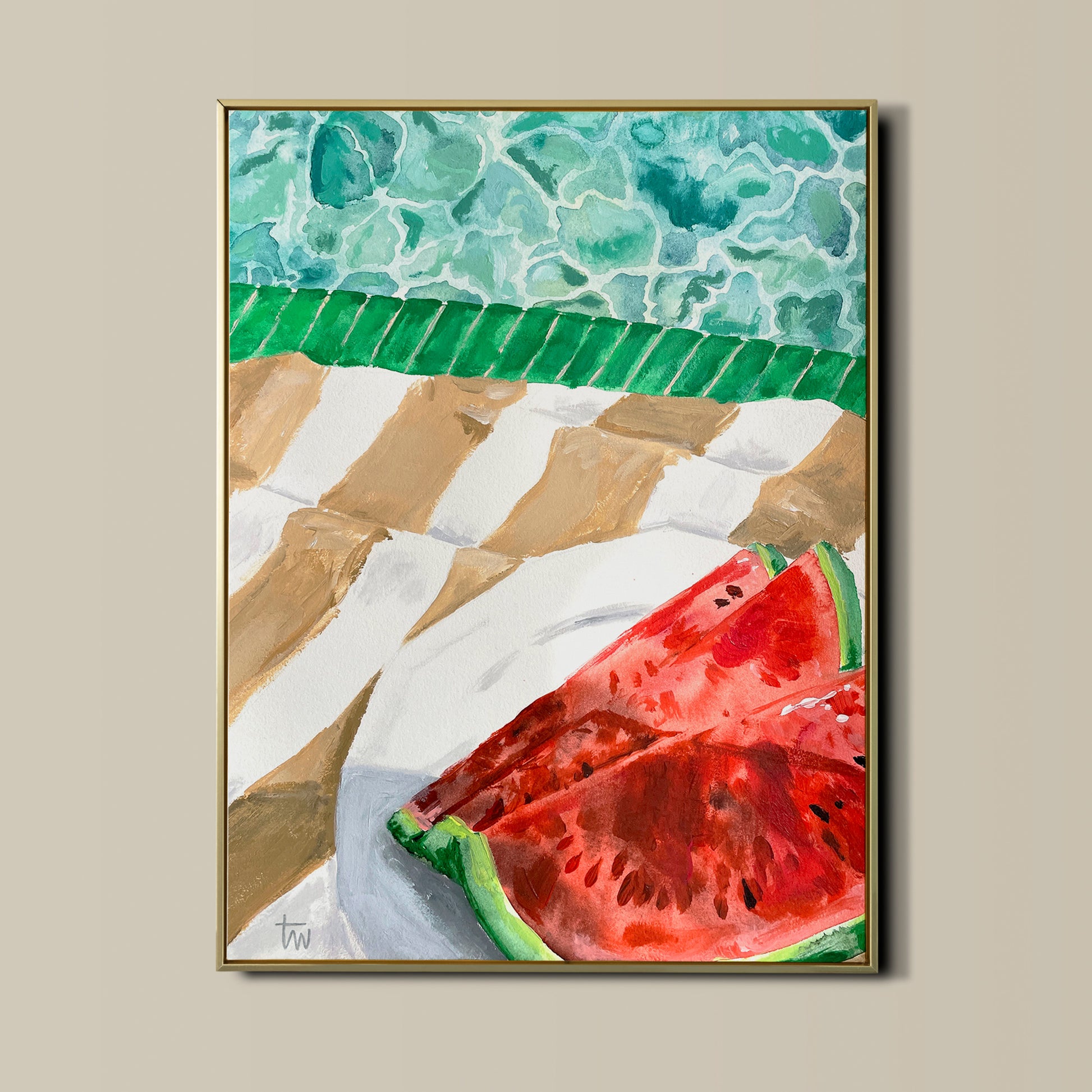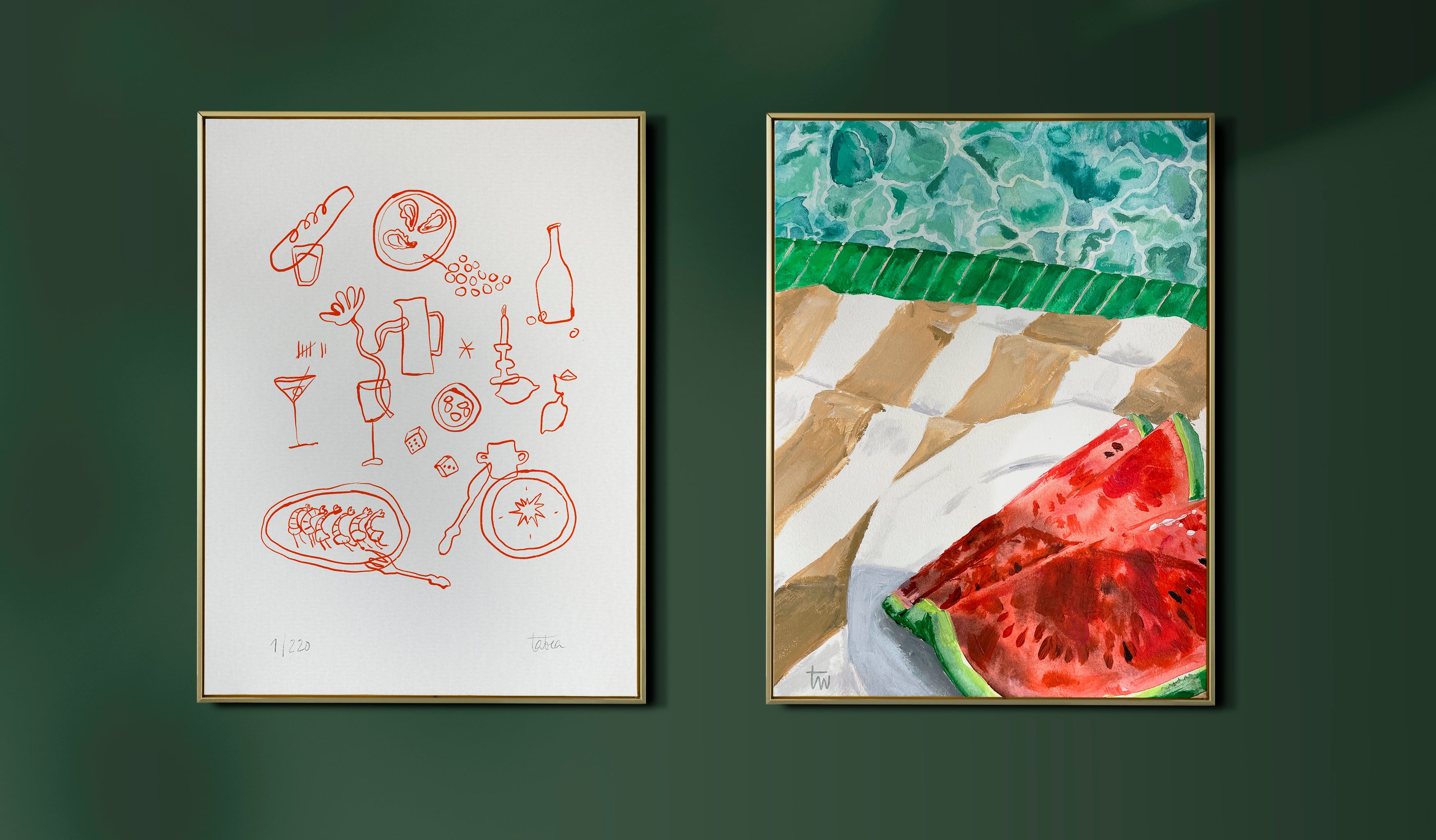 Zwei limitierte Kunstdrucke, mit denen die Wärme und Leichtigkeit des Sommers ins Haus kommt: Das Gefühl von Hitze und Erfrischung an einem heißen SOMMERTAG und das gesellige Zusammenkommen bei einem APERITIVO an einem lauen Abend.